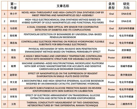 此次优异成绩的取得,离不开课题组全体师生的辛勤付出和不懈努力。入选的13篇论文涵盖了多个前沿的研究方向,包括DNA合成、光纤SPR传感器、电化学传感器、皮肤增透、弱磁传感器、数字微流体、二维热传导等领域,充分展现了课题组在多学科交叉领域的创新实力。未来,课题组将以此为契机,再接再厉,勇攀科研高峰,力争取得更多突破性成果!