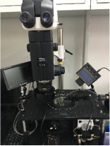 微流体操纵系统(CorSolutions FPS-SA microfluidic system):美国CorSolutions公司搭建的微流体操控平台。由尼康SMZ1800显微镜,智能蠕动泵,摄像头与显示屏,流速传感器,流体探针等搭建的微流体探针台,可以实现微流体芯片工作状态的观测与性能测试,显微镜变化比18:1(附带背视对准显微系统)可实现1-50μl/min的流体输运与检测。