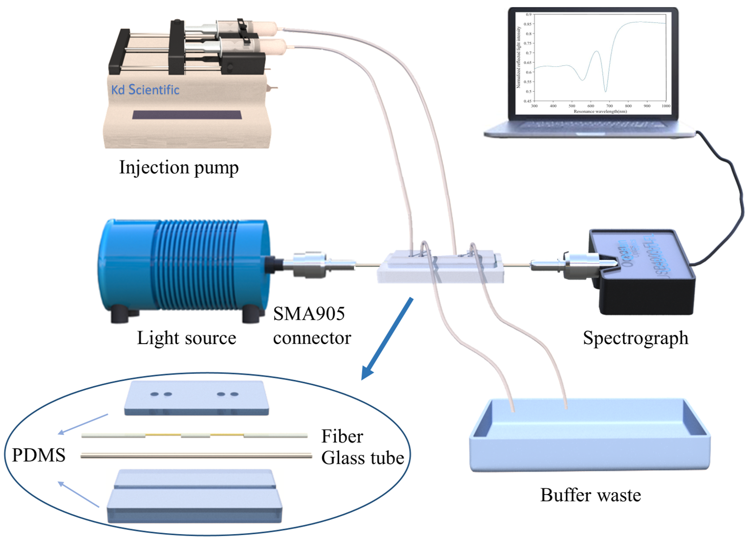 研究意义:原发性肝癌占我国癌症死因第四位,发病率和死亡率皆呈上升趋势。多种早期肝癌标志物联合检测可以提高早期肝癌检出率,降低假阳性率。目前多种肝癌标志物无法利用一种仪器进行同时检测,导致检测系统复杂。此外,为满足多种检测仪器的需求,需进行多次取样,导致检测样品需求量大。基于双通道光纤SPR微光学生物传感器既可以解决多种检测技术联用带来的测量系统庞大和操作复杂的问题,又能避免待测血液样品体积需求量大的问题。因此,开发双通道光纤SPR微光学生物传感器有利于实现多种肝癌症标志物的联合检测。